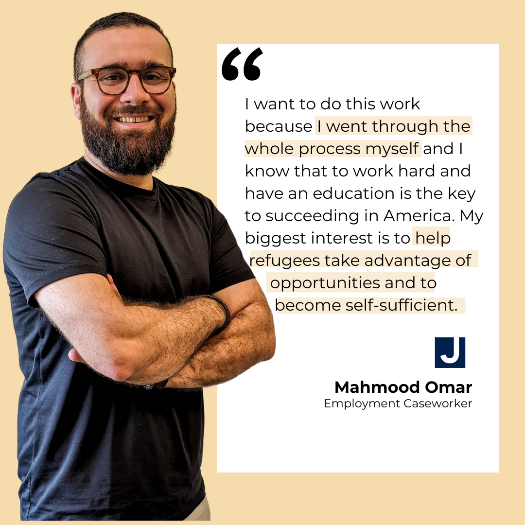 I am originally from Sudan, the JCA resettled me a couple years ago. Now, I’m employed by them and helping to welcome other refugees to get the same great foundation I got when I arrived.