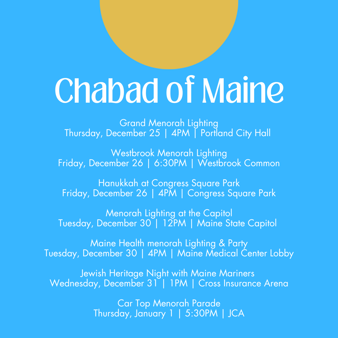 Join us as we gather to celebrate Hanukkah — the Festival of Lights! This joyous holiday reminds us of resilience, hope, and the power of community. From menorah lightings and family gatherings to music, food, and stories, we invite you to share in the warmth and light of the season with the Jewish Community Alliance of Southern Maine.
